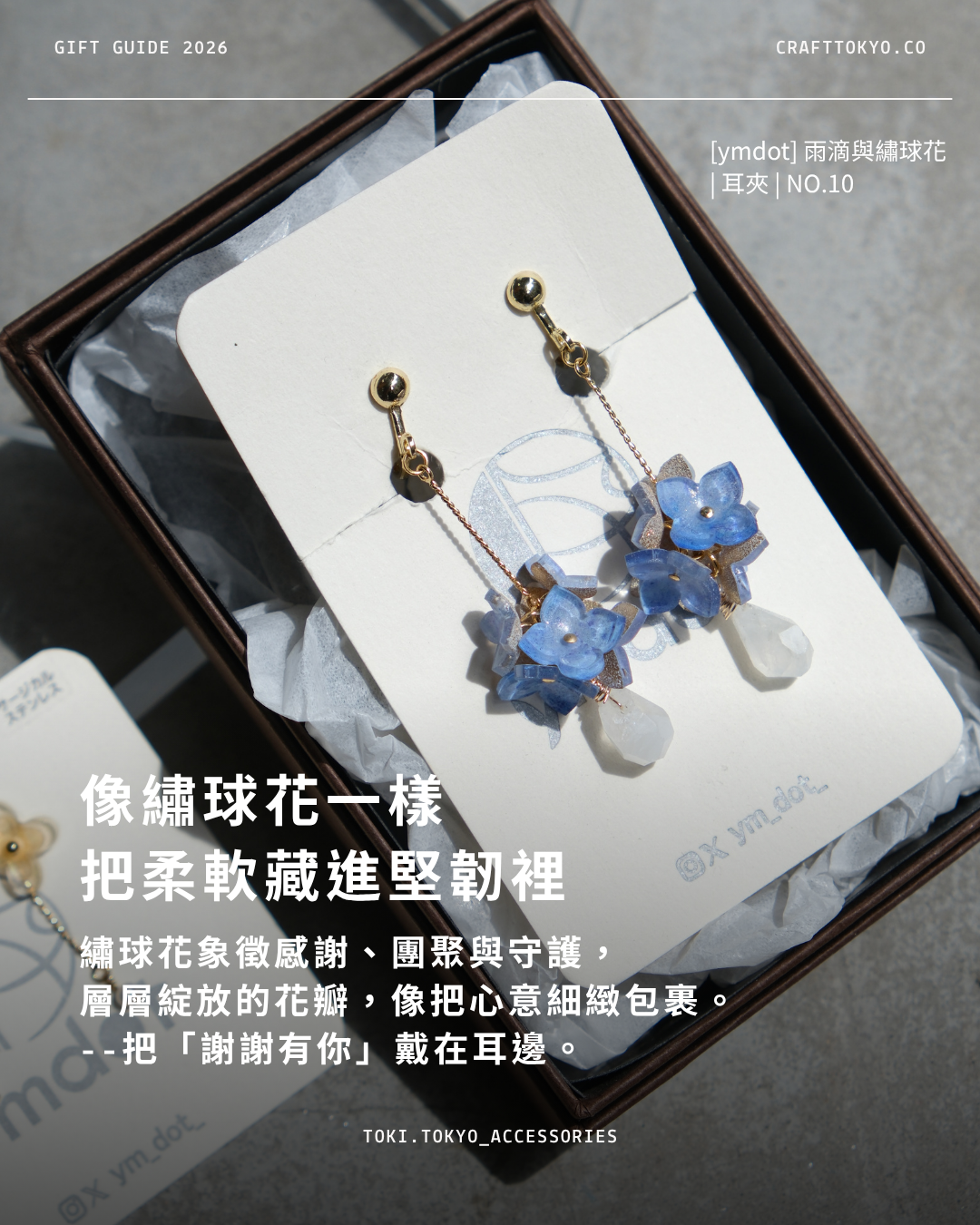 有像繡球花般溫柔的守護、有編織祝願寓意的水引花結,也有像花園秘密般的小眾花飾設計。